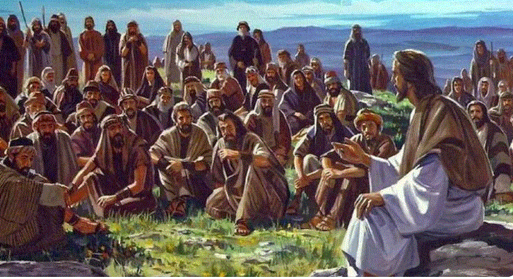Isus siđe s dvanaestoricom i zaustavi se na ravnu. Podigne oči prema učenicima i govoraše: