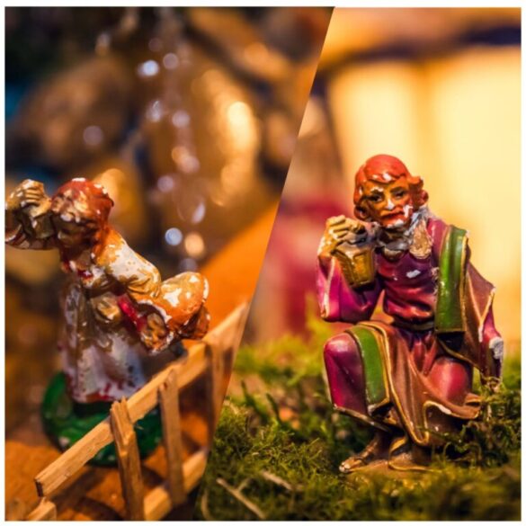 Tu su i egzotične životinje poput deva i slonova. I svakodnevni prizori iz seoskog života imaju svoje zastupnike, a nekoliko pokretnih figura prikazuje majstore starih zanata (kovač, pralja, štriganje ovaca). „Prije smo radili jaslice po tjedan dana, svakog dana malo pomalo.