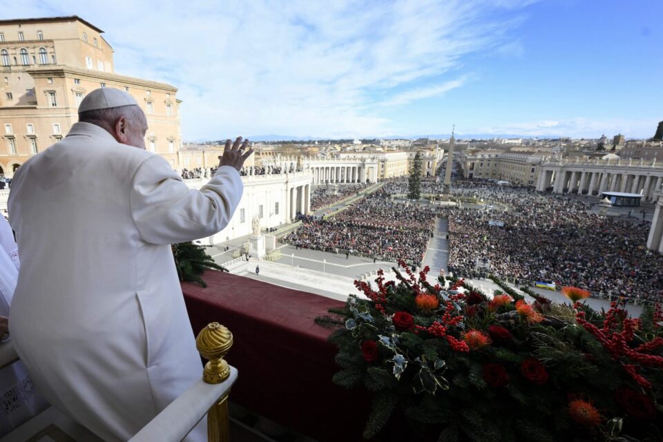 Često se zaustavljamo tek na pragu; nemamo hrabrosti prijeći taj prag, jer nas to stavlja pred jedan izazov. Ulazak kroz Vrata zahtijeva žrtvu koja se sastoji u tome da učinimo jedan korak, da ostavimo iza sebe sporove i podjele, kako bi se prepustili raširenim rukama Djeteta koje je Knez mira. Na ovaj Božić, na početku Jubilarne godine, pozivam svaku osobu, svaki narod i državu da imaju hrabrosti proći kroz Vrata, postati hodočasnici nade, učiniti da oružje utihne i nadvladati podjele!